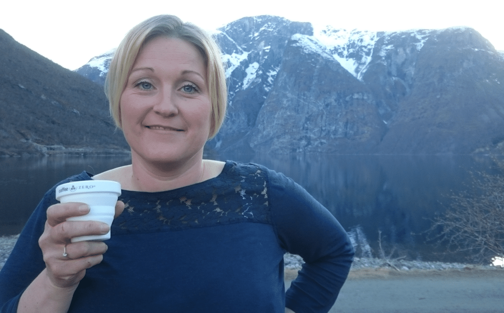(Marianne Haug Moen som nyter en kopp Coffee Zero ute i det fri)